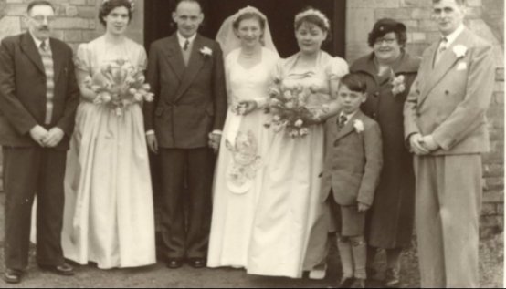 (left to right: John Thomas CROW, Margaret Mary CROW, George Thomas CROW, Gladys CUTTING, Margaret CUTTING, George CUTTING, ??, ??)